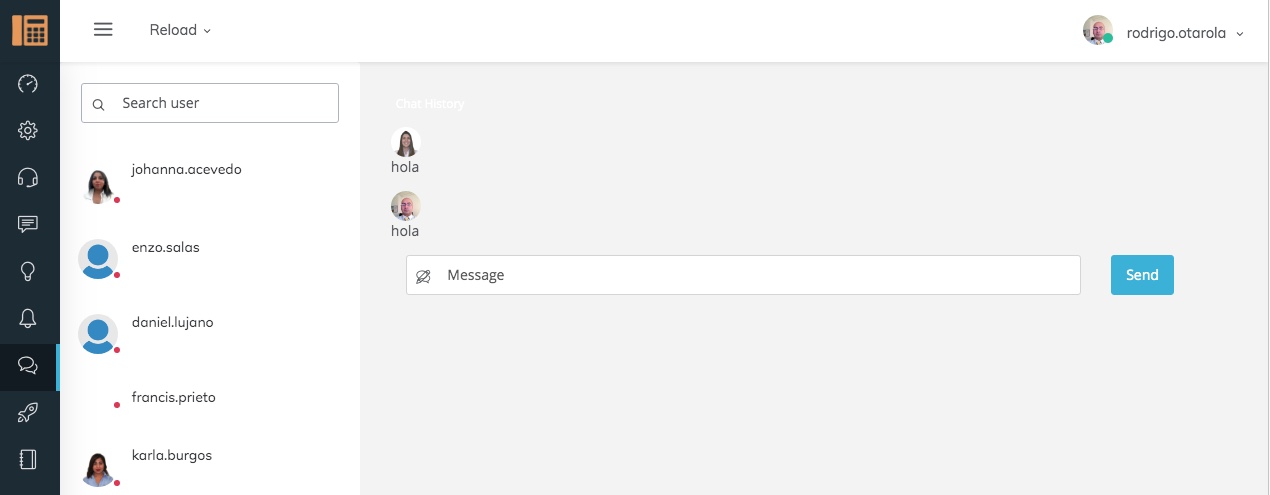 En Chat podemos ver los mensajes internos entre los usuarios de PBXSymphony.