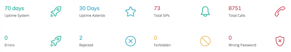 Uptime Asterisk: Indica el tiempo en linea que a estado el servicio Asterisk.