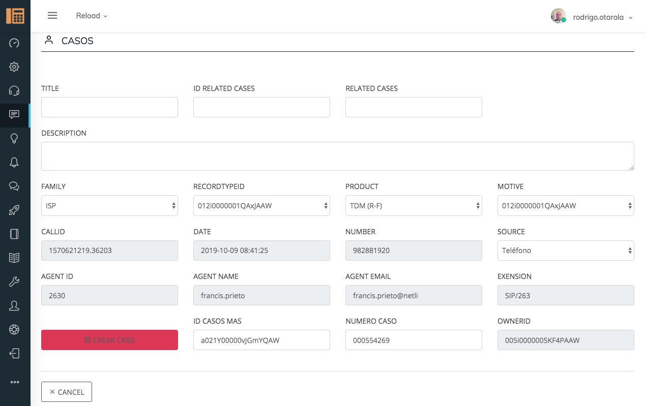 En esta opción tenemos listados de las llamadas registradas con información adicional para poder generar reportes por tipo si es una llamada por reclamo de los servicios que ofrece la empresa.