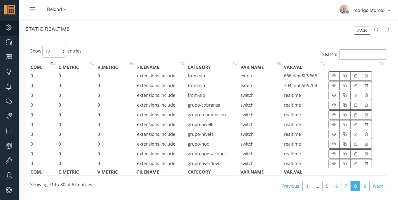 En esta opción tenemos listados de reglas de Static Realtime creadas, estas reglas son parte del Dialplan pero utilizan una forma distinta de configuración.