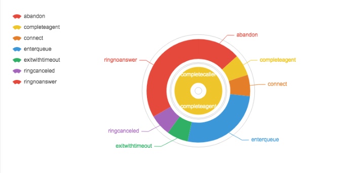 Como podemos observar en la imagen los logs son mostrados en un grafico, que podemos manipular para lograr obtener resultados relacionados con el llamadas Abandonadas, Completadas, etc.